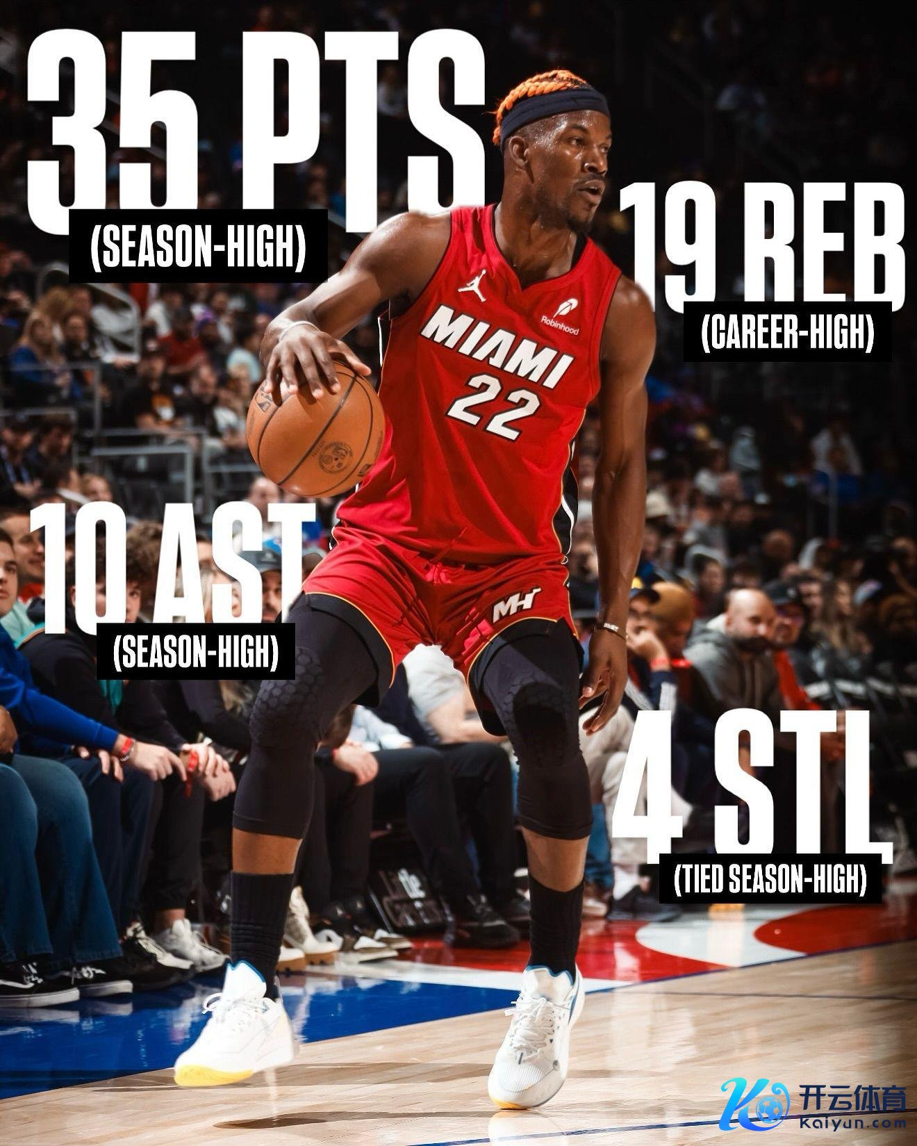 热火队最近景况出色,获取了四连胜,但在昨天加时惜败于底特律活塞队。在那场比赛中,巴特勒推崇出色,砍下35分、19个篮板、10次助攻和4次抢断的大号三双数据。热火队本赛季仍具竞争力,面前战绩为13胜11负,名次东部第六。