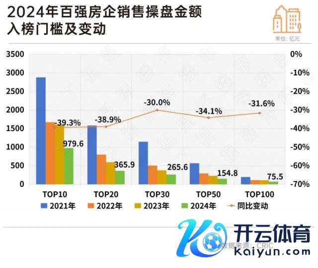 2024 年,百强房企销售门槛值不时下移,且各梯队门槛均降到频年最低。