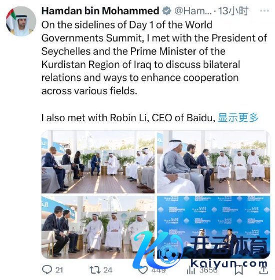新浪科技讯 2月12日晚间音书,迪拜王储Hamdan bin Mohammed在应付媒体上发文示意,近日与百度首创东说念主李彦宏在迪拜会面,并称对方就最新时候趋势以及AI若何重塑寰球发表了主题演讲。据此前音书,百度自动驾驶或将出海至阿联酋。