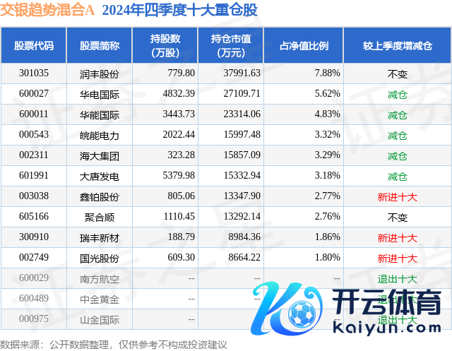 交银趋势搀杂A为搀杂型-偏股基金,凭证最新一期基金季报显现,该基金钞票设置:股票占净值比72.47%,债券占净值比4.65%,现款占净值比23.76%。基金十大重仓股如下: