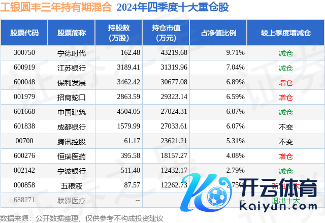工银圆丰三年捏有期羼杂为羼杂型-偏股基金,凭据最新一期基金季报暴露,该基金钞票建立:股票占净值比88.7%,无债券类钞票,现款占净值比11.78%。基金十大重仓股如下: