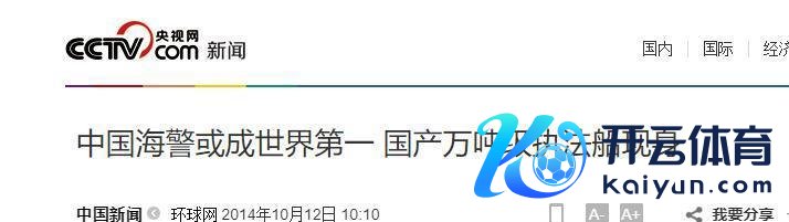 央视网在2014年10月12日发了一篇报说念,标题是《中国海警或成世界第一 国产万吨级轨则船现身》。内容提到中国海警将有可能成为全球起首的海洋轨则力量,尤其是自家研发的万吨级轨则船也初次亮相。